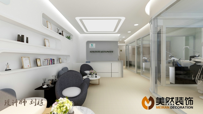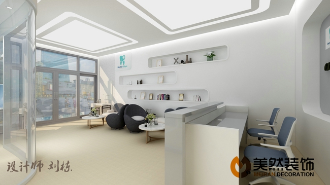 此牙科診所位于涿州錦繡范陽底商,建筑面積230平米,共分候診區、兒童診室、VIP診室,普通診室,種植室、消毒間,牙模操作間等,配置比較齊全,檔次較高,由涿州美然裝飾客服部經理劉棟親自操刀設計。