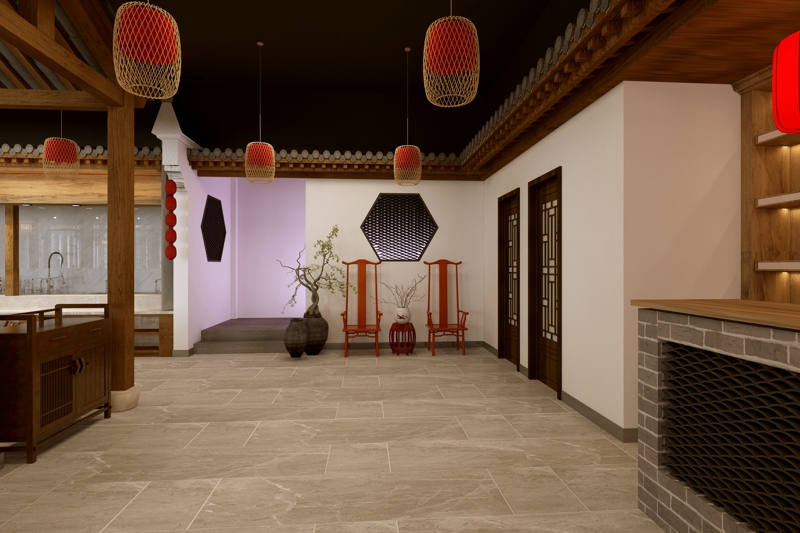 設計師以重慶為中心的古巴渝地區是巴渝文化的發祥地,這片土地孕育了重慶悠久的歷史,以山城這個城市符號為主題結合新派中式風格,在運用重慶山城元素還保留相對的簡約,來達到寧靜雅致的就餐環境。